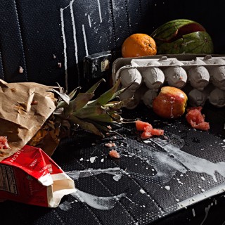 In the rear seats of vintage cars, a ransacked grocery bag...wilting balloons and an untouched birthday cake...the strewn contents of a woman's suitcase.... In each photo of Backseat Veritas we encounter a recent aftermath, a composition at once disturbing and familiar. What led to such commotion, we wonder, and what's to come?